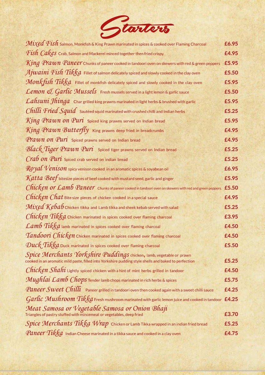 Welcome to Spice Merchants, a culinary gem nestled in Southsea, Portsmouth. This vibrant establishment offers a diverse menu showcasing an array of tantalizing starters, from Ajwaini Fish Tikka to the unique Royal Venison. Each dish bursts with bold flavors, making it an exciting choice for food lovers.